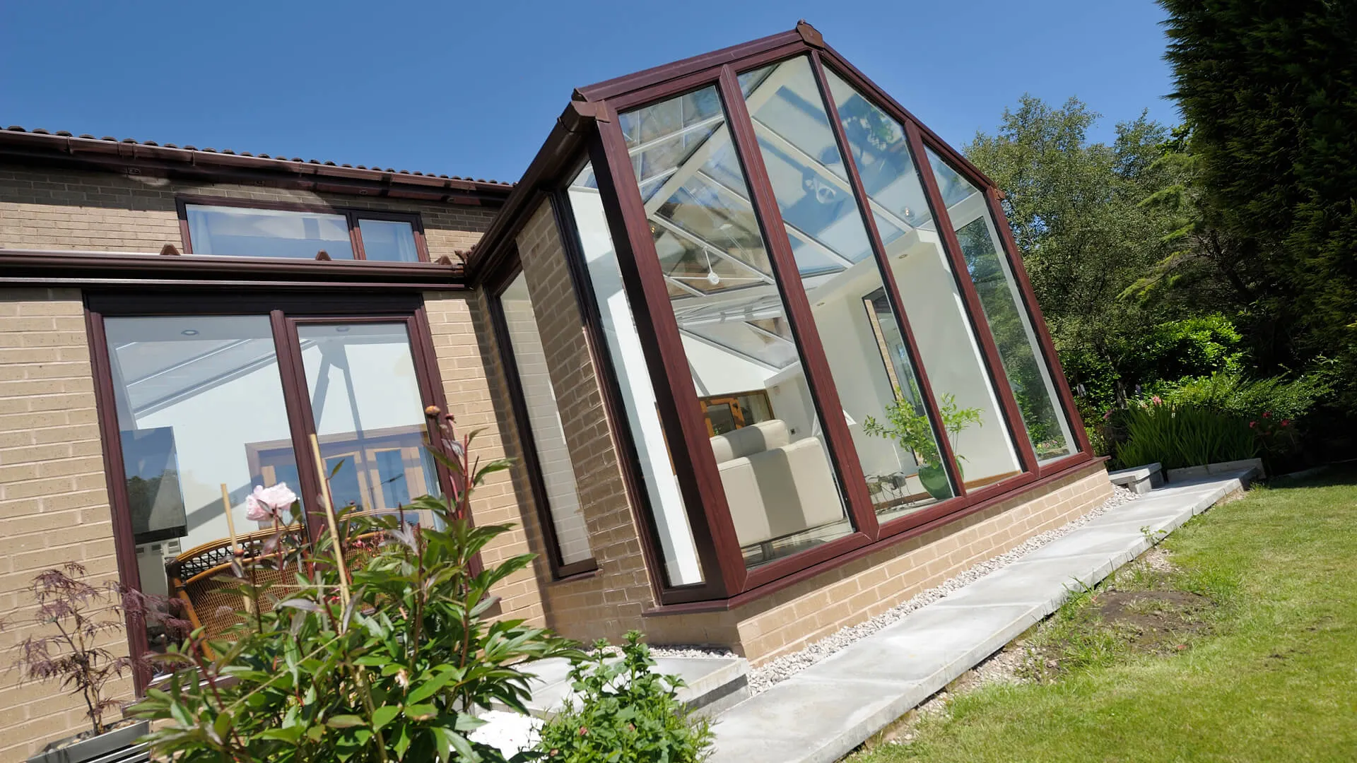 Conservatories in South Wales are arguably the most versatile home extension of all as they can be built to just about any size and specified however you see fit. First Class Windows has conducted conservatory installations across the whole of South Wales and therefore integrated them into just about every house style there is. Tell us how you want the conservatory to function, whether it’s as a luxury living room or extravagant dining space.